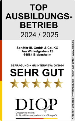 Schäfer III. darf sich nach erfolgreicher Zertifizierung durch das unabhängige Deutsche Institut für Qualitätsstandards und -prüfung e.V. (DIQP) aus Berlin mit dem Siegel „Top Ausbildungsbetrieb“ schmücken.